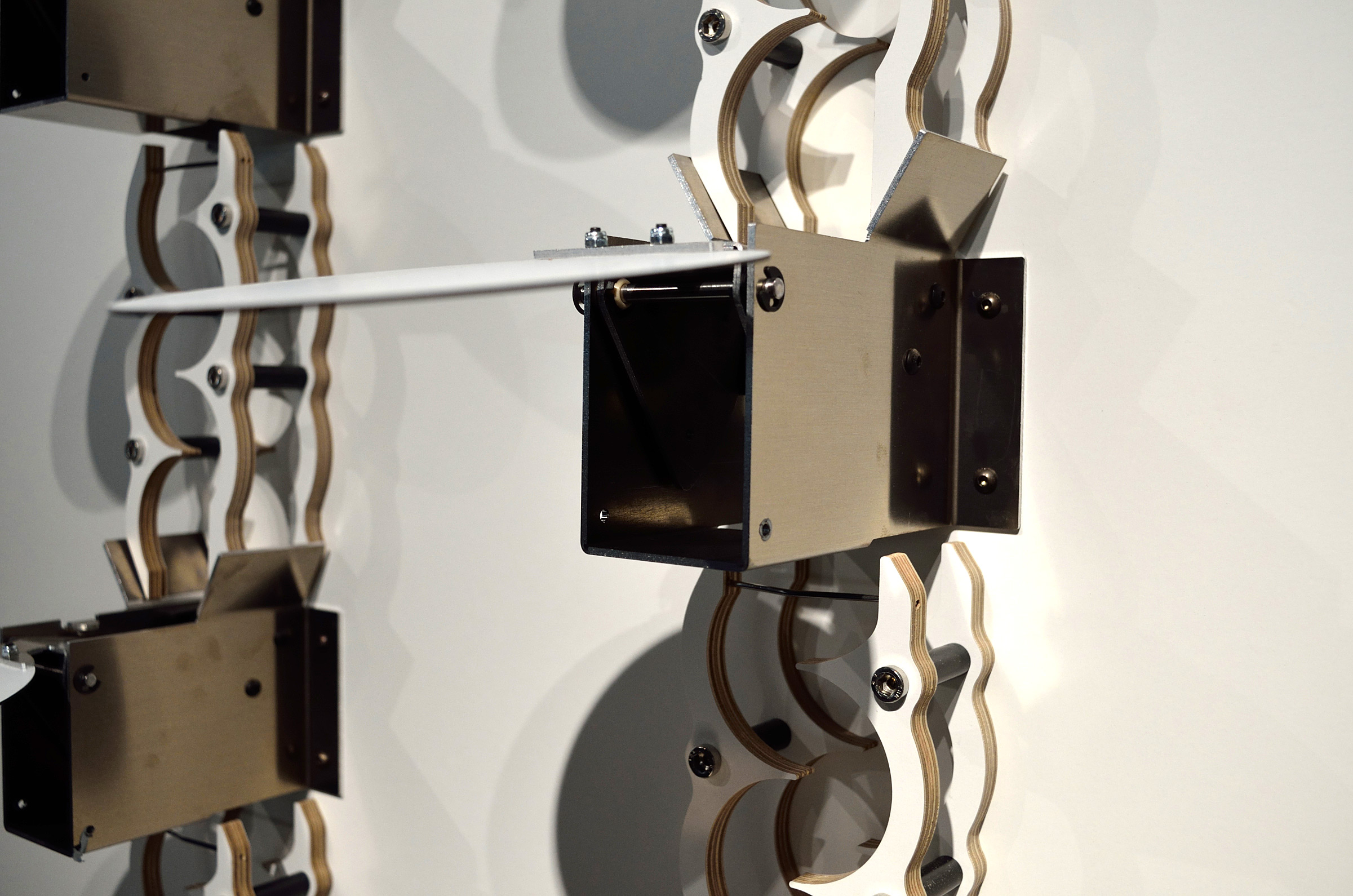 Für das im Jahr 2016 eröffnete World Nature Forum in Naters in der Schweiz habe ich vier große Kugelbahnen als Wandinstallationen, eine kinetische Rauminstallation sowie vier Stereobetrachter entwickelt und realisiert. Auftraggeber beier-wellach, Berlin.