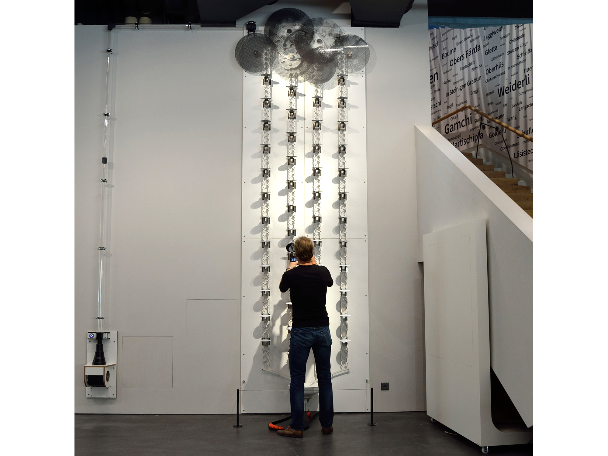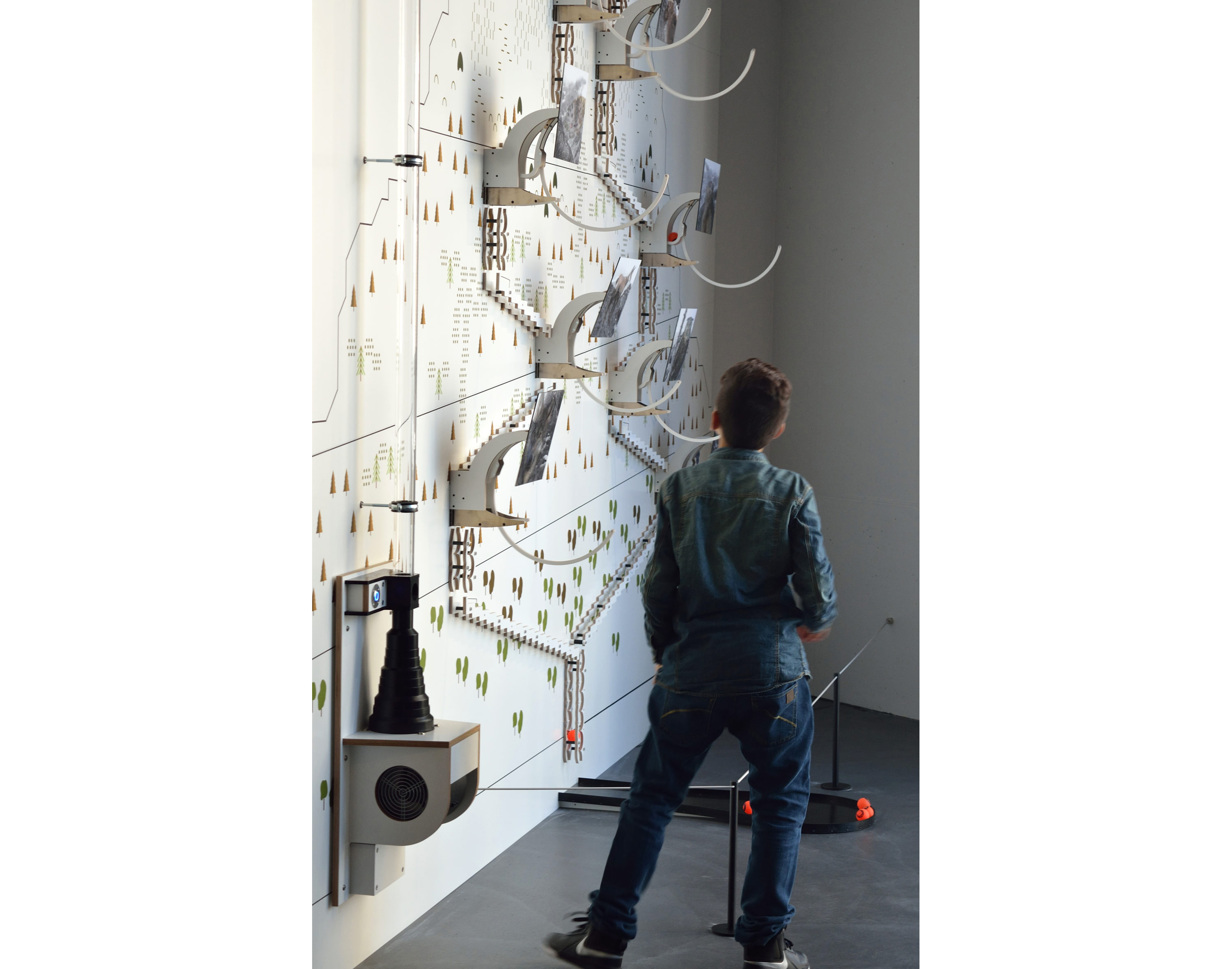 Für das im Jahr 2016 eröffnete World Nature Forum in Naters in der Schweiz habe ich vier große Kugelbahnen als Wandinstallationen, eine kinetische Rauminstallation sowie vier Stereobetrachter entwickelt und realisiert. Auftraggeber beier-wellach, Berlin.