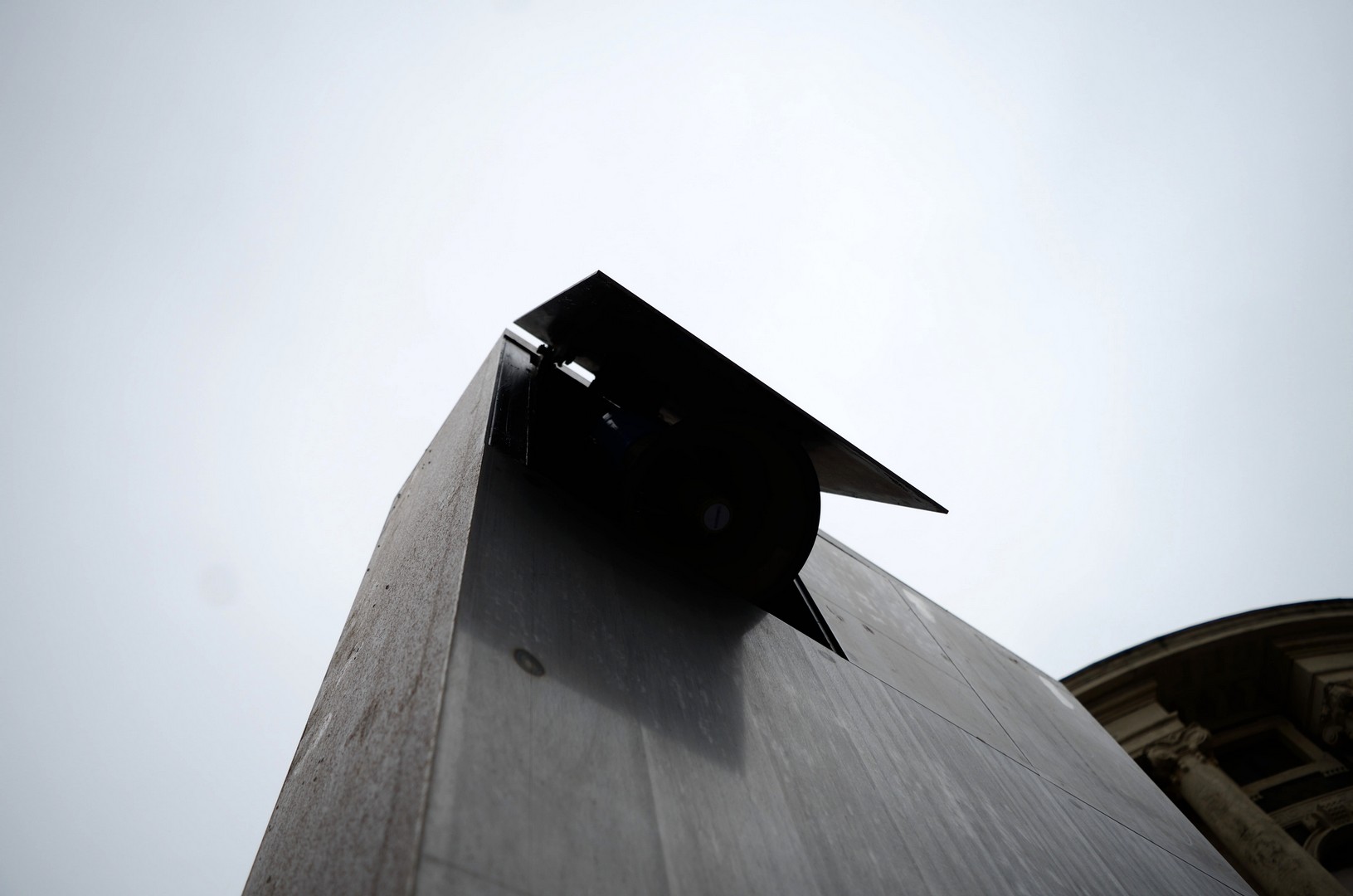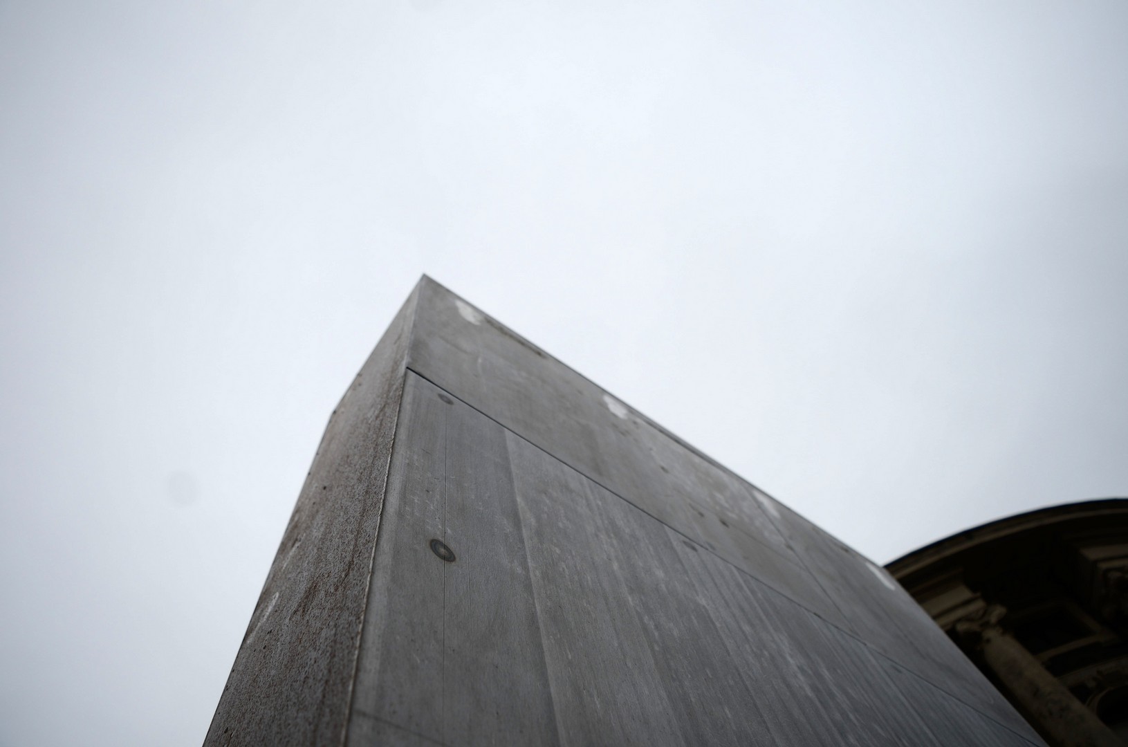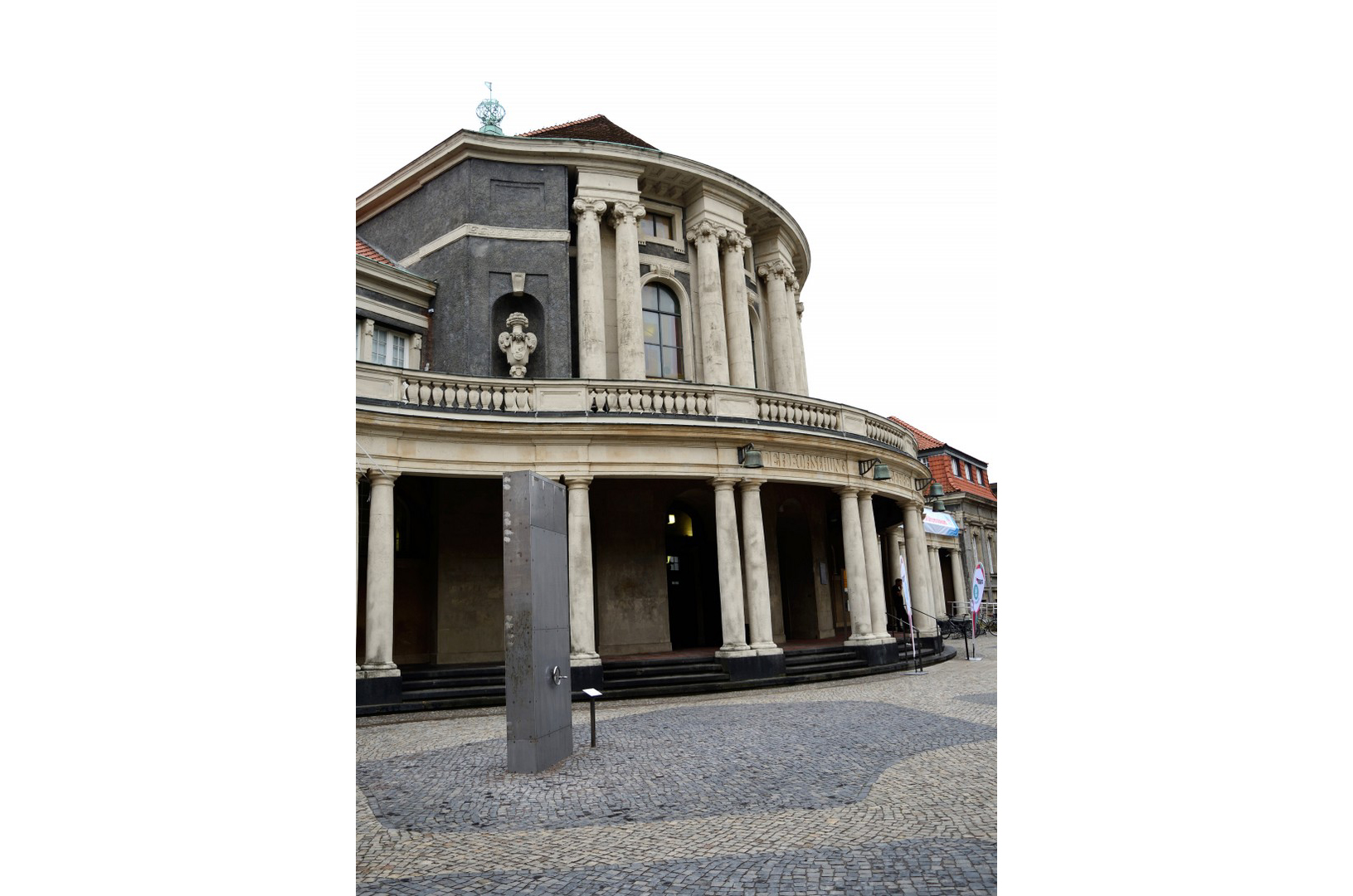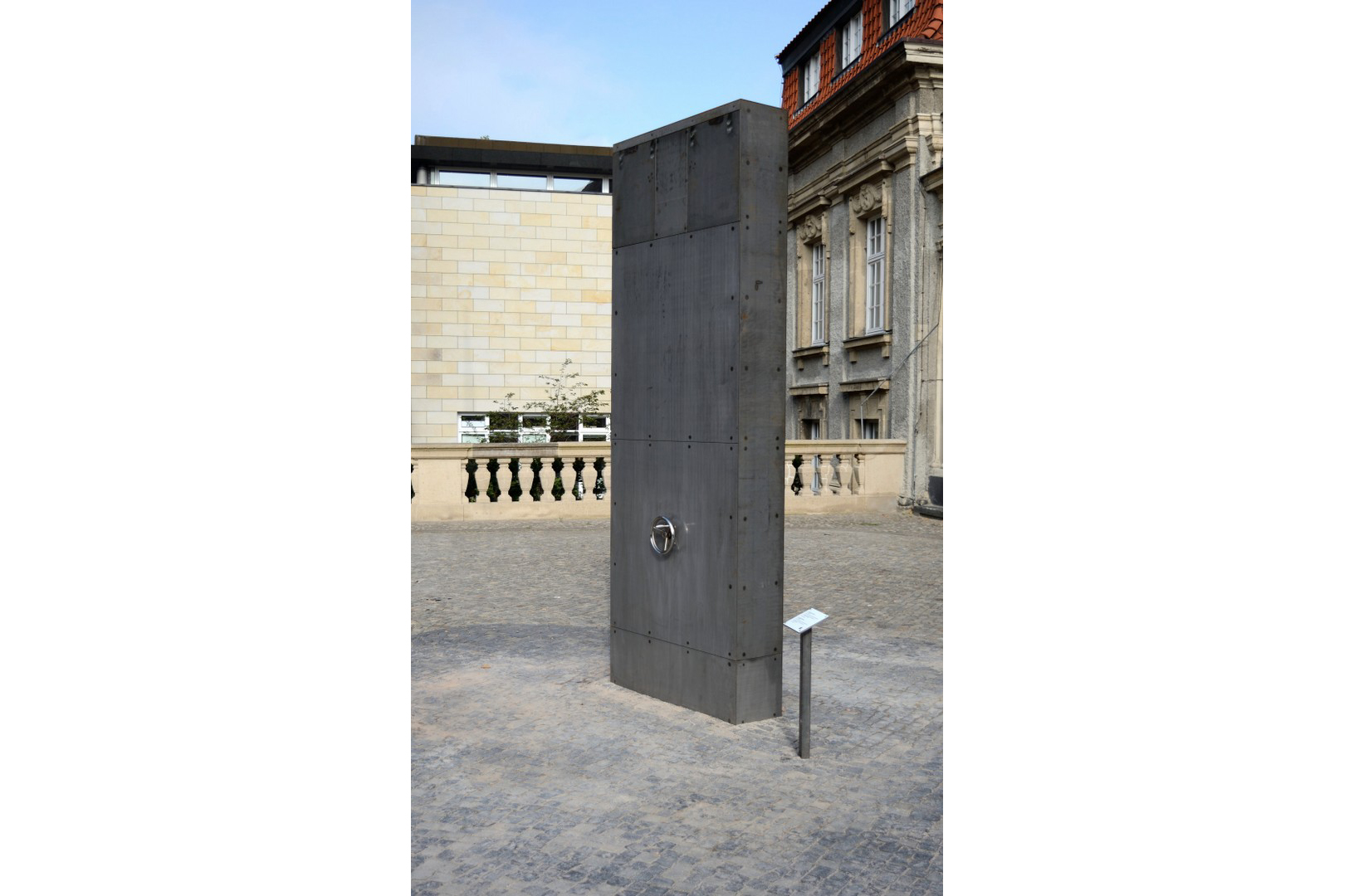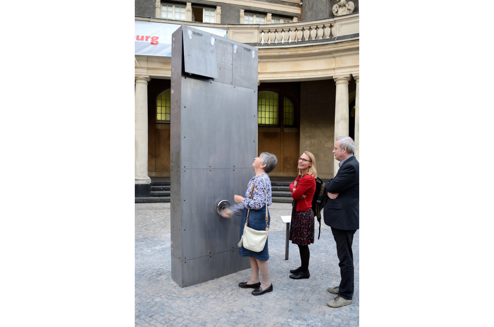 Auf dem Vorplatz des Universitätshauptgebäudes steht eine übermannsgroße Stele mit einer Kurbel an ihrer Vorderseite – eine Kreuzung zwischen einem Leierkasten, einem Tresor und dem mysteriösen Monolithen aus dem Film „2001“. Die Stele ist im unbenutzten Zustand ein relativ einfach und geschlossen wirkender Körper aus schwarz gewalztem Stahl mit einer darauf fremd wirkenden und daher Aufmerksamkeit erzeugenden Kurbel.